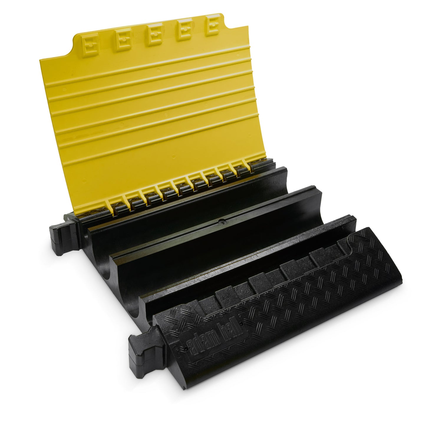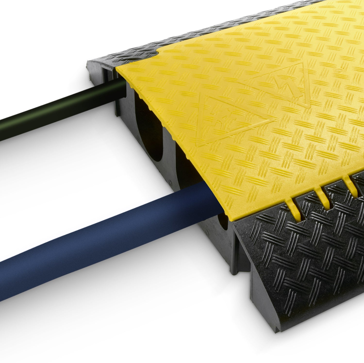 - Heavy duty cable protector made of black, recyclable polyurethane for demanding applications