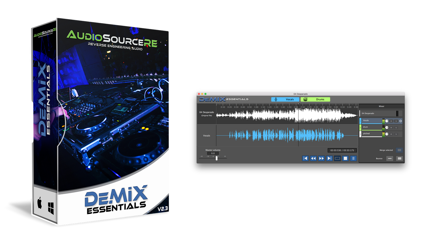 Enkelt auto-fjern vokaler eller gitar fra en sang eller isoler andre instrumenter uten anstrengelse. DeMIX Essentials er et must-have for DJ-er, musikkprodusenter, remix-artister, musikere og undervisere som ønsker å isolere og fjerne instrumenter, lage backing tracks og samples, eller lage raske remixer fra eksisterende lyd.