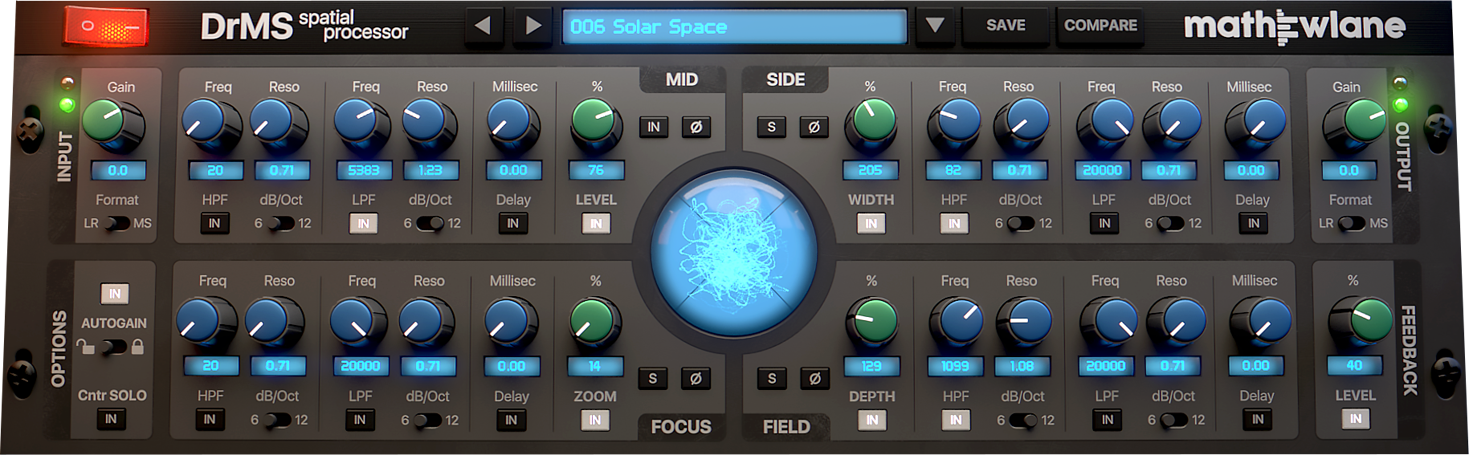 DrMS er en unik spatial prosessor, tilgjengelig som AAX/AU/VST/VST3 plug-in, med et bredt spekter av bruksområder for miksing, mastering og postproduksjon - som går fra enkel MS (Mid-Side) koding/dekoding, til forbedring av stereo feltbredde og dybde, til å fikse mono kompatibilitetsproblemer og mer.