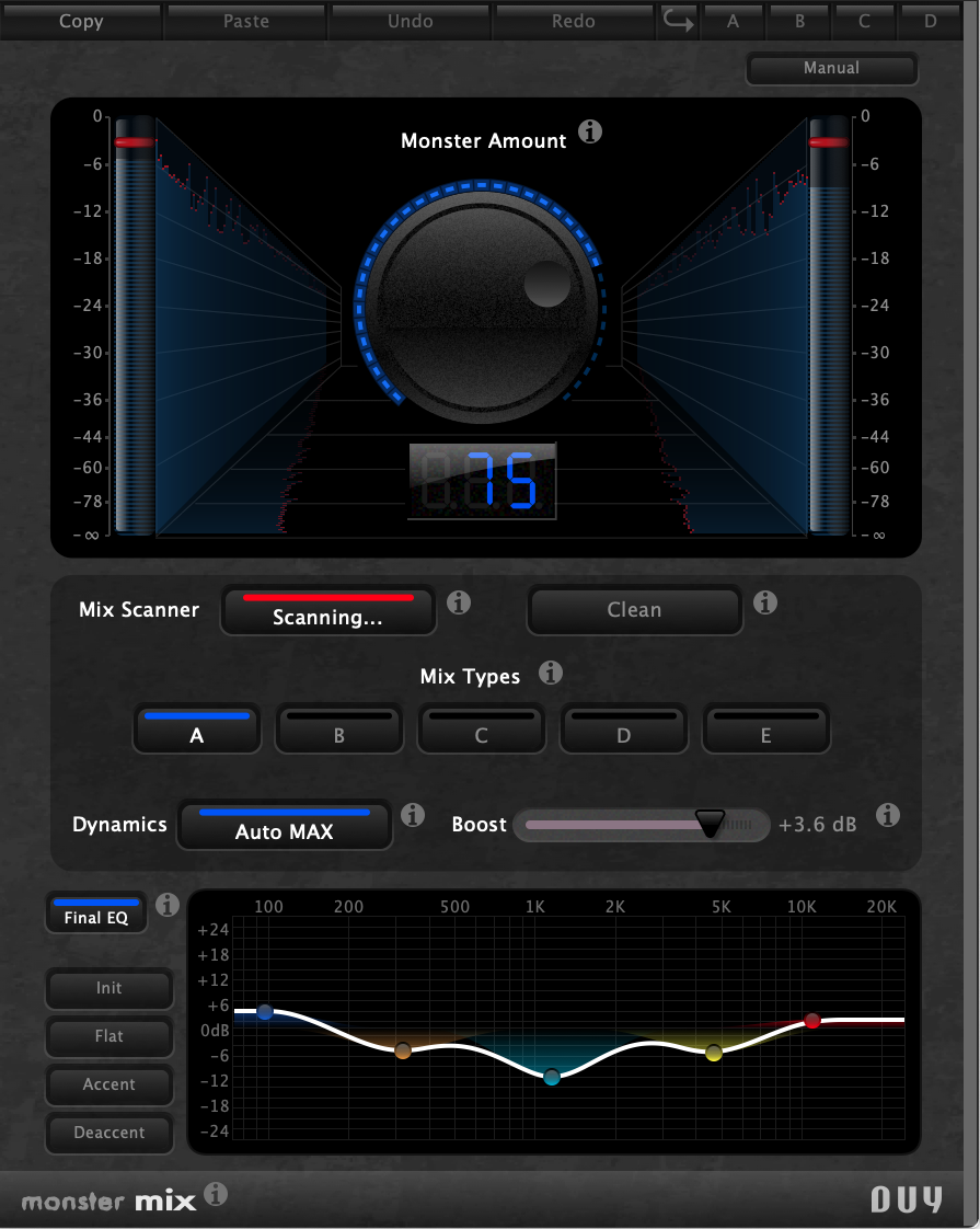 Monster Mix er en enkel og kraftfull automatisk dynamikk- og equalization-optimalisator.