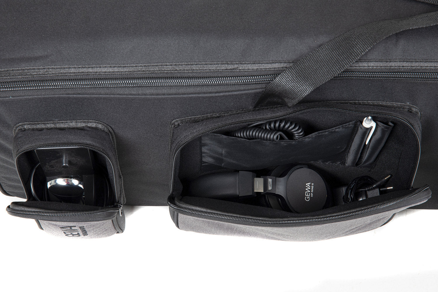 - Justerbar skulderrem med karabinkrok i metall og skulderpute