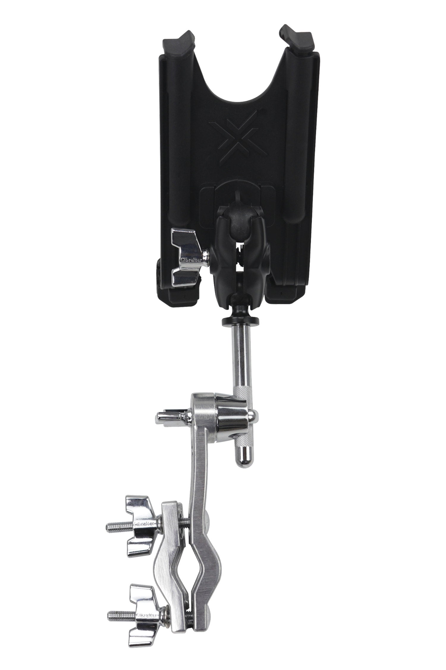 - Med multiklemme for montering på cymbalstativ eller andre hardwarestativer