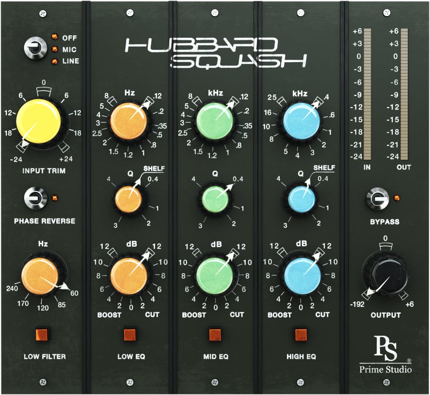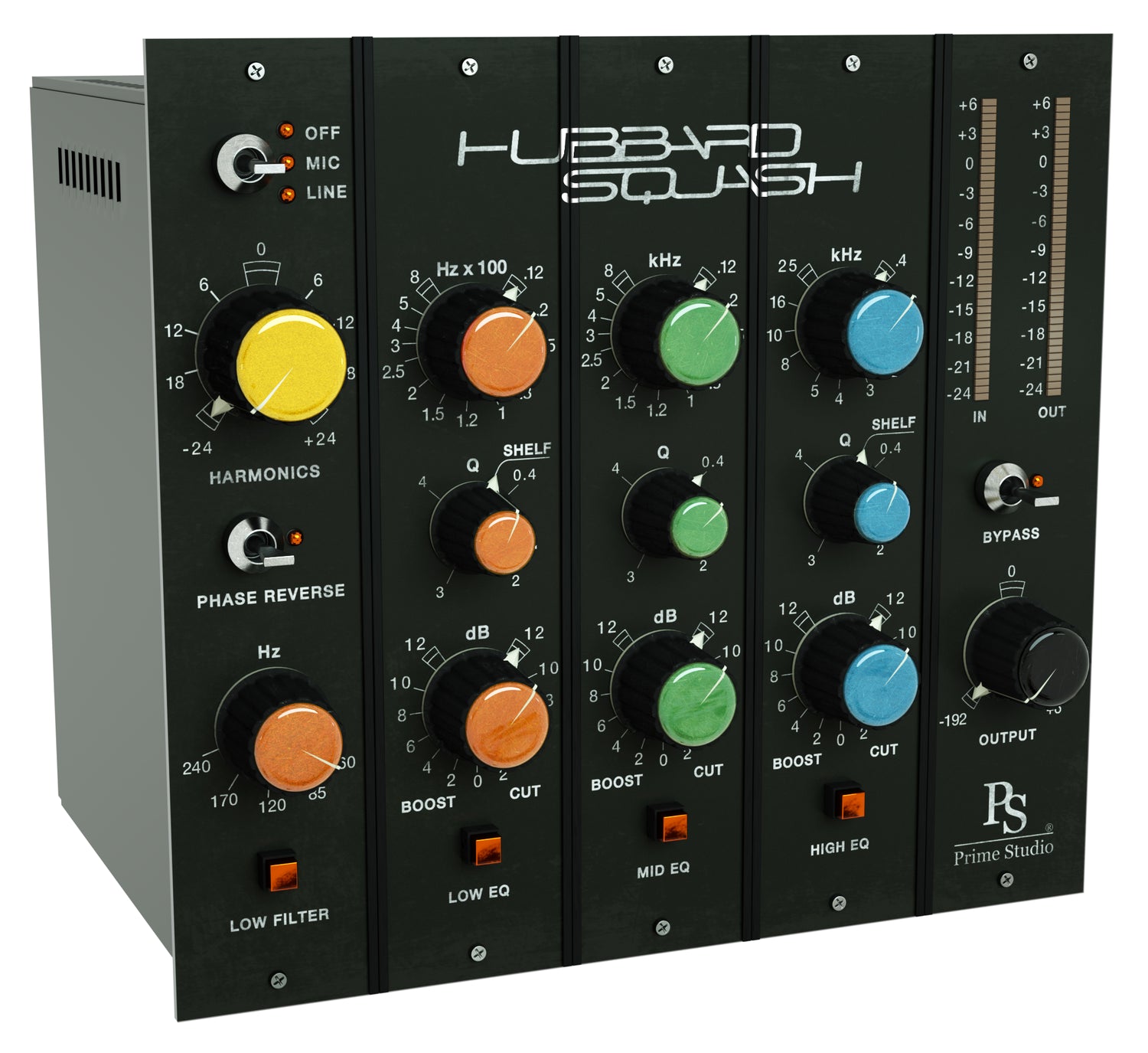 Prime Studio® Hubbard SquashSmooth, smoother, Hubbard Squash. Klassisk tre-bånds fullt parametrisk stereo equalizer som tilbyr rik tone for separat aktiverbare lav-, midt- og høyfrekvente bånd og et lavpassfilter.