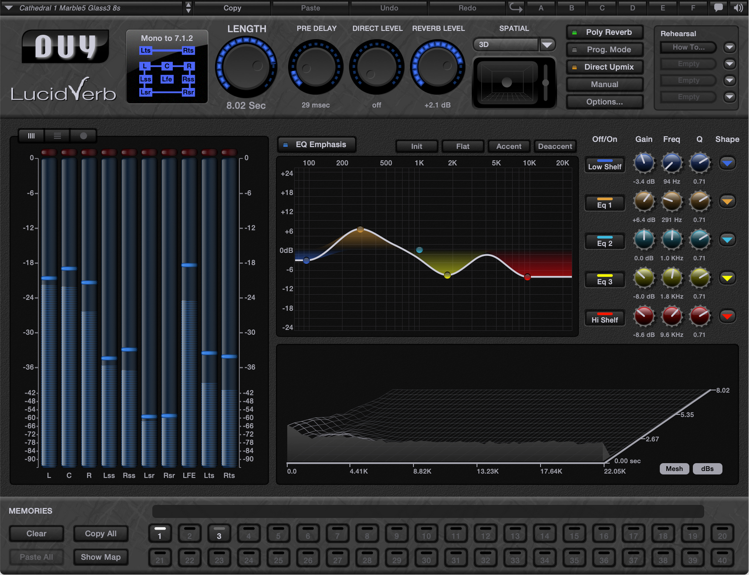 LucidVerb er en hybrid konvolusjonsreverb med en proprietær sonisk "DNA" modellmotor som kan gjengi et hvilket som helst antall fullstendig dekorelerte impulsresponsser med lynrask hastighet.