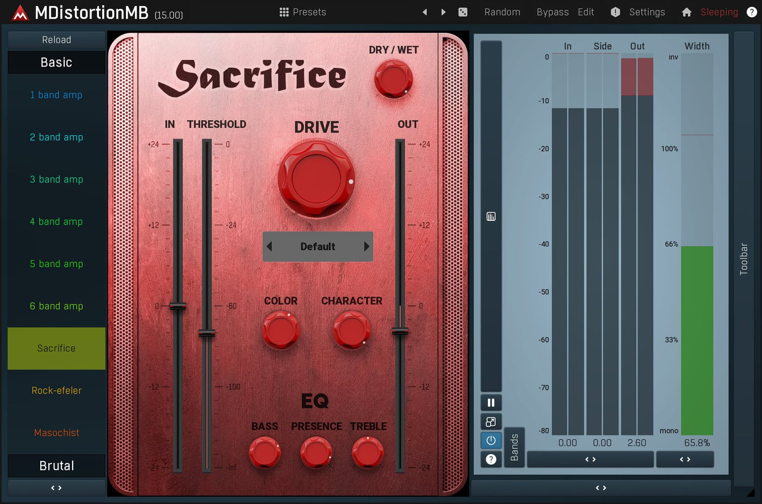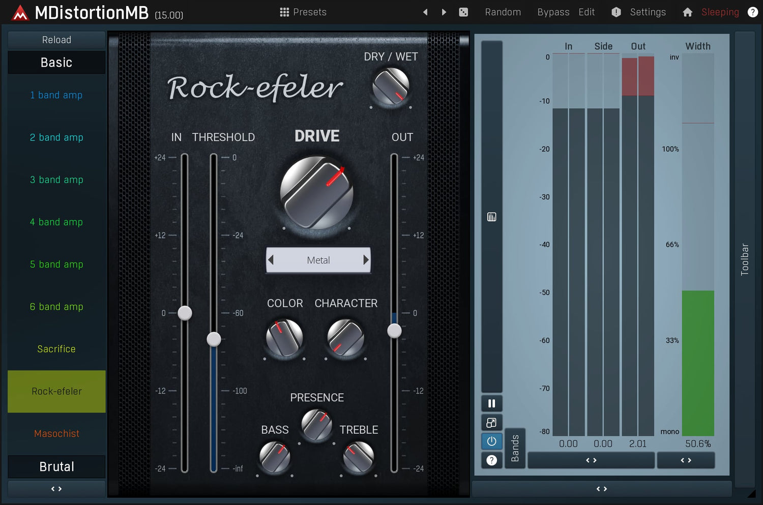 MMultiBandDistortion er en unik distortion plugin som kombinerer en generalisert amp simulator med en digital distortion prosessor.