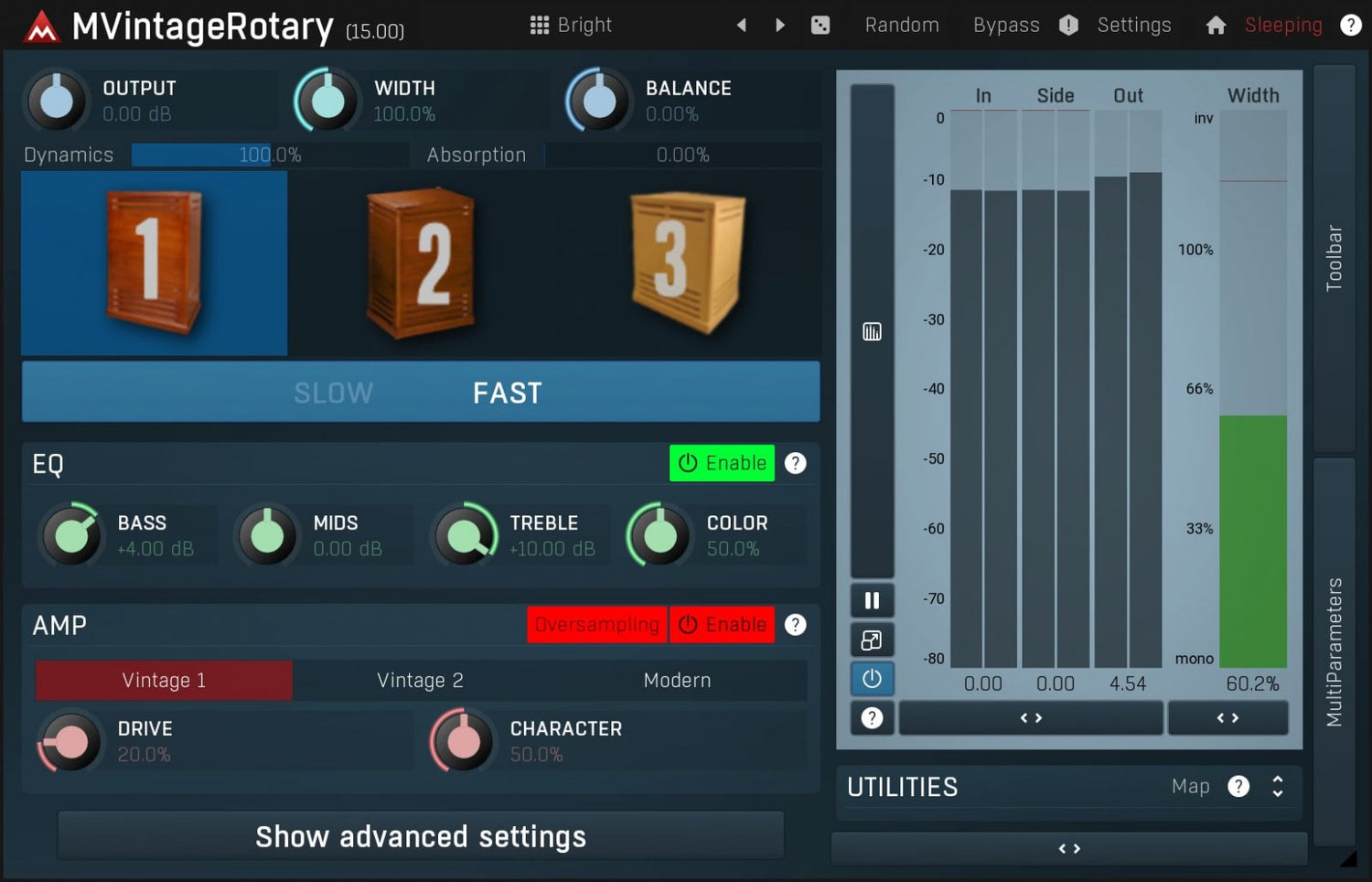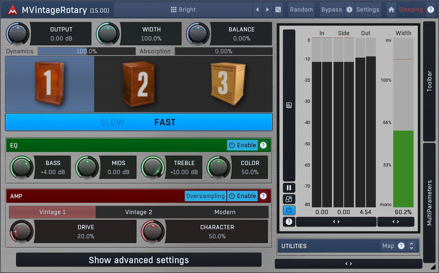 MVintageRotary er en perfekt lydende rotary-simulering basert på de berømte Leslie® kabinett. I motsetning til originalen har denne også flere avanserte funksjoner. Designet for orgler, men perfekt for keyboard, gitarer og mange andre instrumenter.