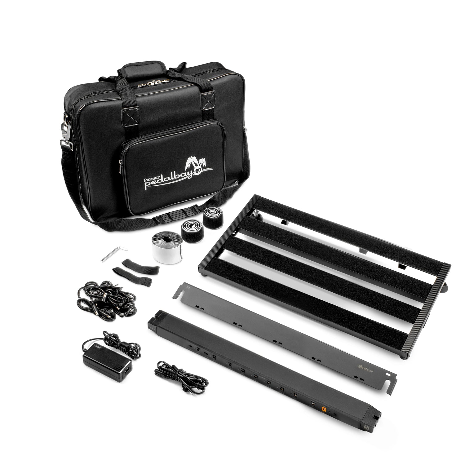 PEDALBAY® 60 PB-settet kombinerer Palmer PEDALBAY® 60 og Palmer WT PB 60-strømforsyningen med 8 enkeltisolerte utganger. Takket være den patenterte integrasjonen kan strømforsyningen byttes ut og festes med bakre skinne på PEDALBAY® 60. Separat transport av strømforsyningen og PEDALBAY® er ikke lenger nødvendig.
