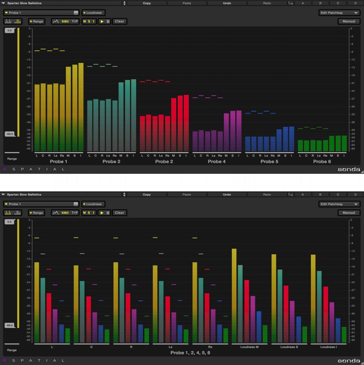 DSpatial Sonda er en multipoint nivåmåler. Den gir peak-, RMS- og loudness-avlesninger og lar deg sammenligne flere punkter innenfor en kompleks miks fra ett enkelt interface.