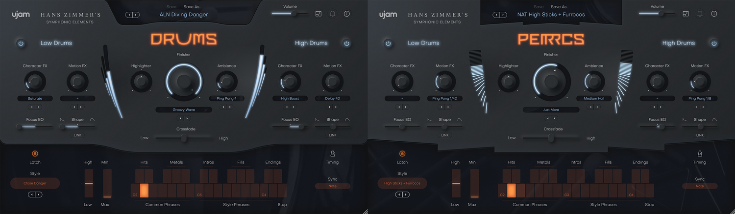 Trå inn i verden av Hollywood blockbuster-perkusjon med UJAM Hans Zimmer’s Drums & Percussion Bundle. Dette kraftparet—PERRCS og DRUMS—samler den rå, filmatiske kraften fra orkestral perkusjon og den raffinerte rytmiske detaljen fra høy perkusjon, laget direkte fra Hans Zimmers personlige lydbibliotek.