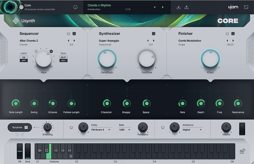 Usynth krever ikke at du vet hvordan en synthesizer fungerer for å finne og lage inspirerende nye lyder. Intuitivt juster til hjertets innhold. Tenk Instagram-filtre, eller tenk ratt og to pedaler – slik fungerer Usynth.