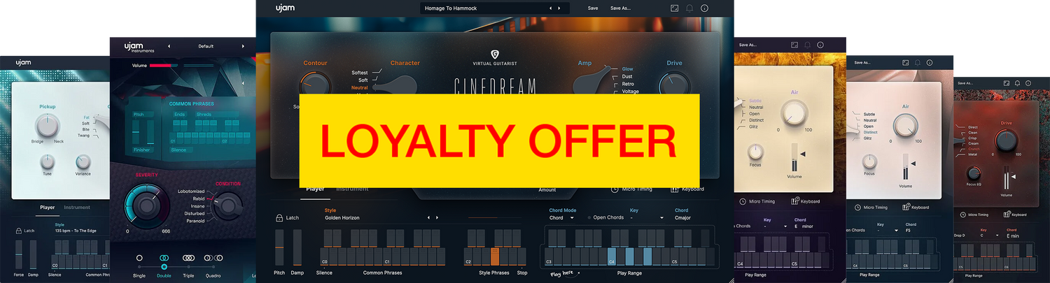 Hemmelige bak Virtual Guitarist-serien ligger i UJAMs frustrasjonsfrie designpolicy – ingen lydteknikk eller gitarferdigheter nødvendig! Bare sett inn den virtuelle instrumentpluggen i din kompatible DAW etter eget valg og begynn å produsere realistisk klingende gitarspor på et blunk ved hjelp av intuitive kontroller.